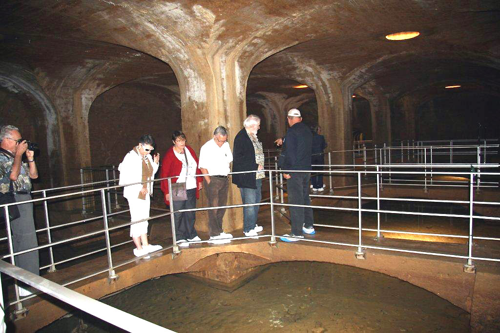 en un bassin de captage recouvert de voûtes protectrices des sources captées.