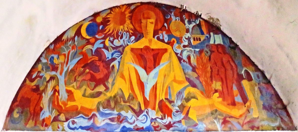 siècle, on est frappé par les fresques modernes qui ornent le mur nord