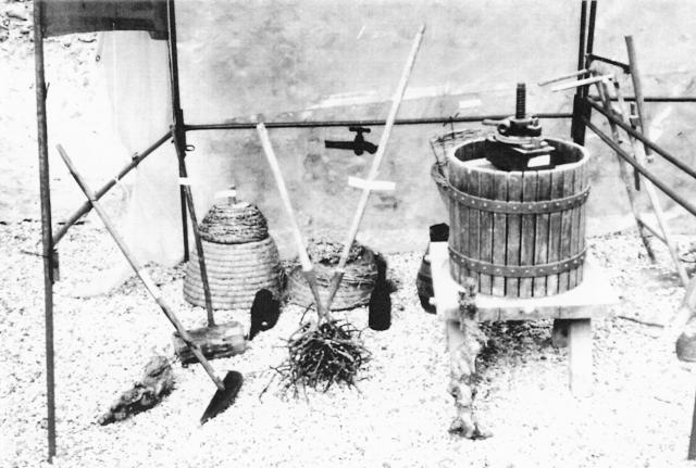 deux cruches à cidre, dont une en bois, pour les ouvriers.